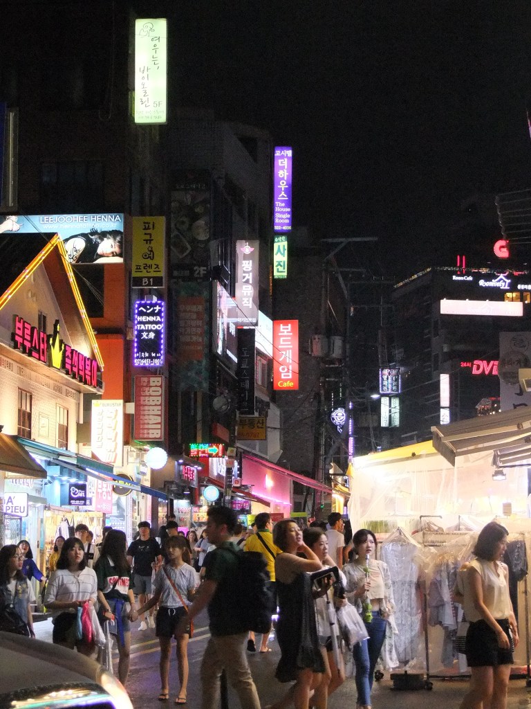 Veeee bizim ve de muhtemelen koreli gençlerin favorisi olan Hongdae. Hongdae adını bölgede bulunan üniversiteden adını alıyor aslında ve tahmin edebileceğiniz gibi daha çok üniversite öğrencileri ve yeni işe başlamış beyaz yakalı ‘young adult’ diye tanımlanan bir yaş grubuna hitap ediyor. Hem gece hem gündüz ziyaret edildiğinde farklı şeyler sunan hem alışveriş hem yemek hem eğlence için oldukça geniş bir yelpazeye sahip bir bölge Hongdae. Sokakları performans sanatçıları doldururken iliklerinize kadar ‘işte şimdi KOREDEYİM’ çıldırmasını yaşayabileceğiniz bir bölge. Ayrıca dizi ve filmlerde gördüğümüz meşhur karaoke stüdyolarının en uygun fiyatlı ve güvenilirleri burada. Karaoke stüdyolarının da güvenirliliği mi olurmuş demeyin eğer tekinsiz bir yerde karaoke bara giderseniz dolandırılabilirsiniz bile diye biliyoruz. Bu sebeple biz Hongdae’deki karaoke barları ,Korean barbekü restaurantlarını ve kozmetik dükkanlarını kısacası Hongdae ‘deki her şeyi öneriyoruz. Seoulde kaldığımız 1hafta boyunca minimum 4 akşamımızı Hongdae’de geçirdik ve asla pişman değiliz. (Hongik Universite İstasyonu – 2 no’lu metro hattı,9 no’lu çıkış)